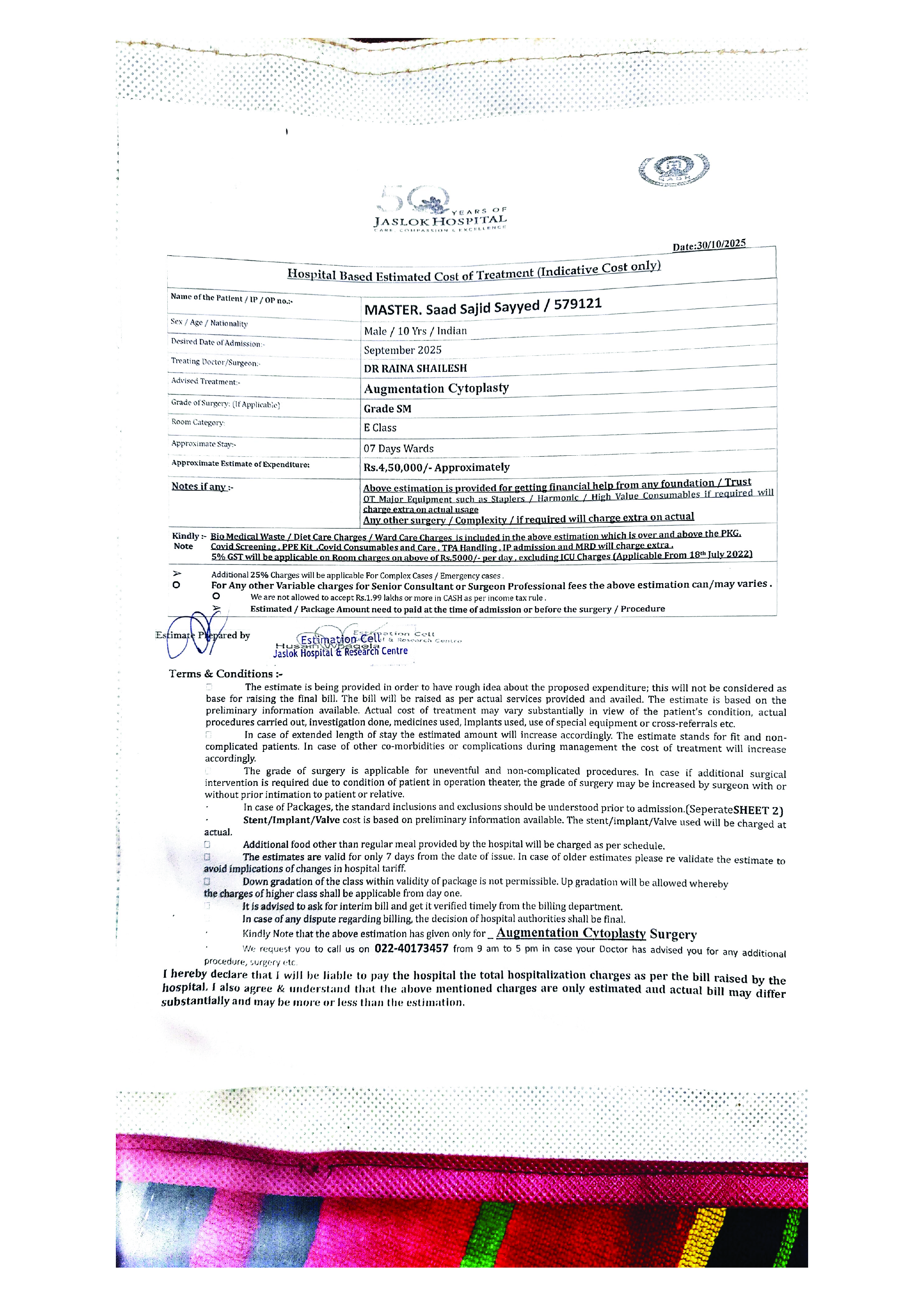 - The operation costs ₹4,50,000, which the family cannot afford.