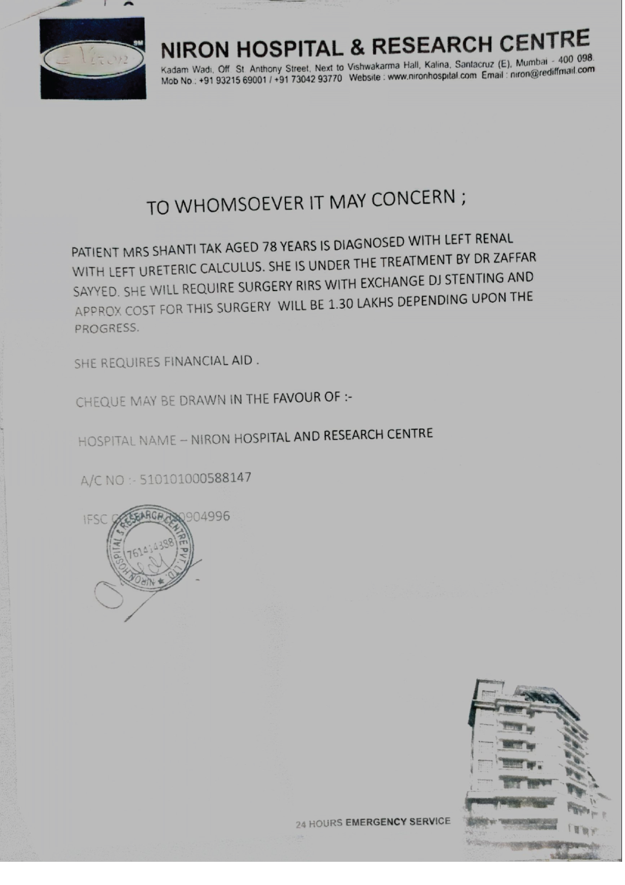 * However, he is still short of ₹50,000, and the hospital is asking for the remaining amount before proceeding.