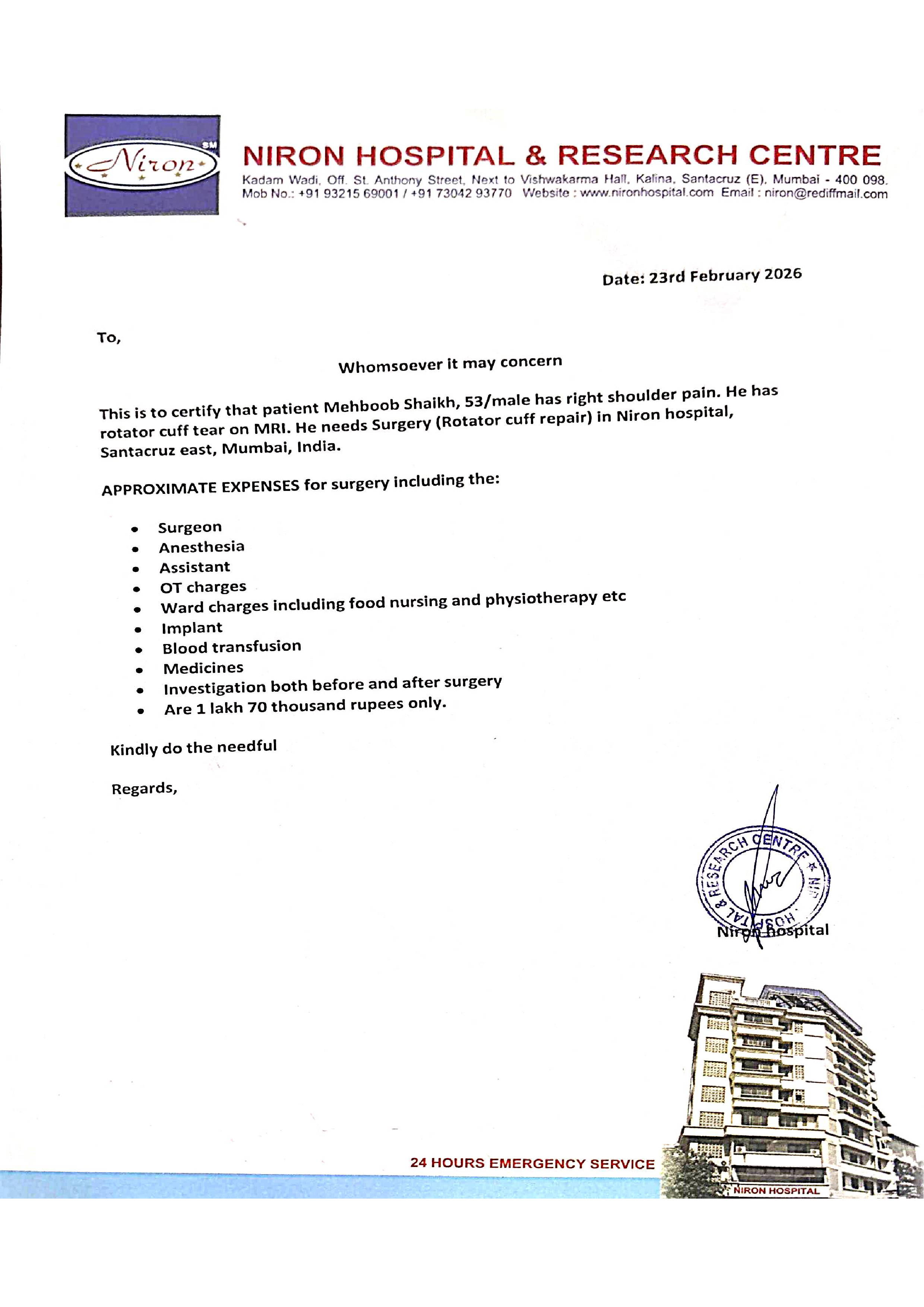 • Together, we can help Mehboob get the surgery he urgently needs and help his family.