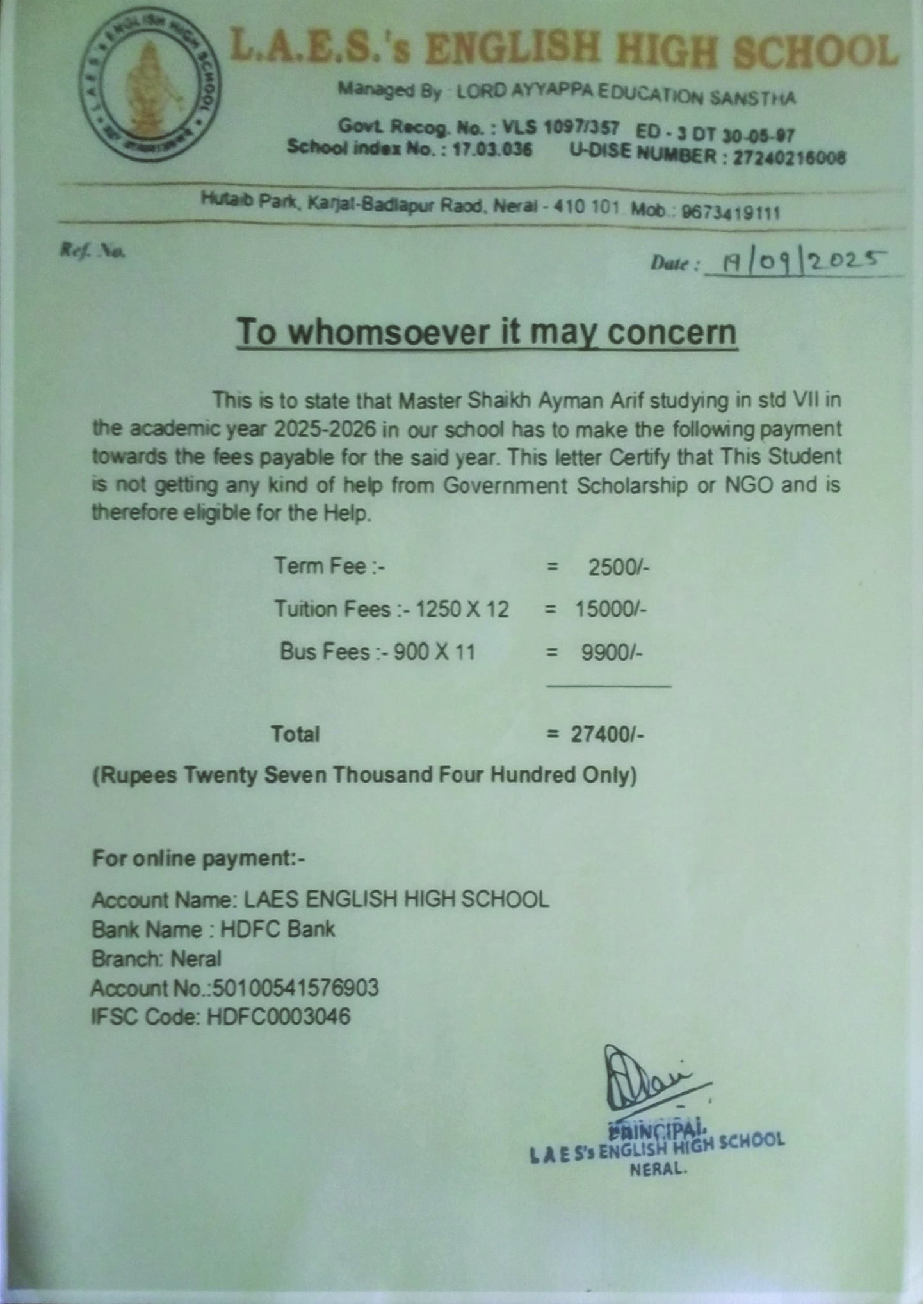 - School Fees: ₹27,400